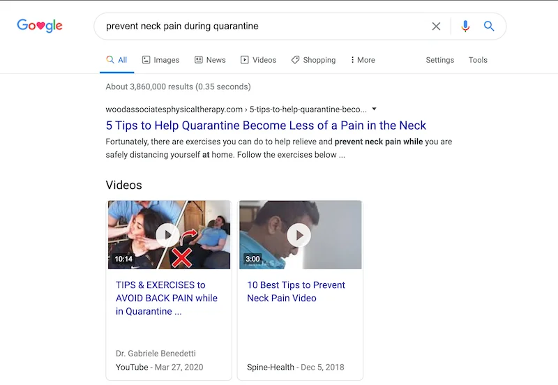 Internet je trenutno zasićen COVID-19 sadržajem, ali to ne znači da još uvek ne možete da težite prikazivanju na prvoj stranici Google pretrage. Trik je da cilјate klјučne reči dugačkog repa visoko specifične za vašu nišu. Na primer, kiropraktičar može da napiše blog post „Vežbe za donji deo leđa kod kuće“ ili „Izbegavajte bol u vratu dok ste u karantinu“. Ovaj sadržaj ne košta ništa drugo nego vaše vreme, koje u ovom slučaju možda imate malo više.