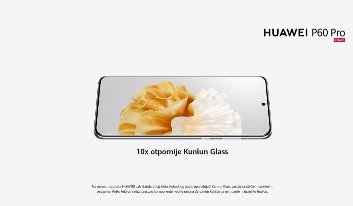 Sa velikom sigurnošću koju ova komponenta Huawei P60 serije pruža, korisnici mogu da surfuju društvenim mrežama ili da prate omiljenu epizodu TV serije u pokretu, dok putuju na posao. Ekran poseduje IP68 sertifikat otpornosti na prašinu i vodu, dajući korisnicima osećaj sigurnosti kada koriste svoje telefone tokom sportskih aktivnosti na otvorenom kao što su planinarenje ili odmor na plaži.