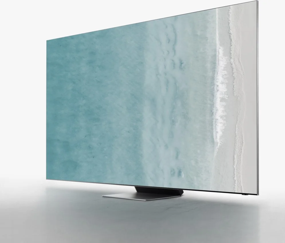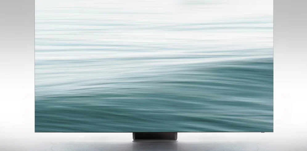 Infinity ekran, kao jedinstvena karakteristika u dizajnu Samsung televizora, omogućava maksimalno imerzivno iskustvo, uz minimalne ivice oko samog ekrana. Okvir Samsung Neo QLED 8K televizora stanjen je gotovo do nule, zahvaljujući naprednim tehnologijama i dizajnerskim tehnikama – izrađen od nerđajućeg čelika i debljine samo 0.8mm, ovaj okvir „briše granice” između ekrana i okoline, stvarajući iluziju da ekran lebdi u vazduhu.