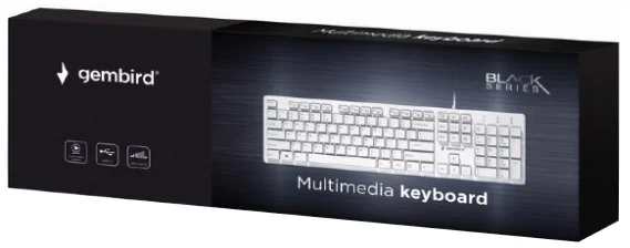 Tastatura je stigla u pomalo neuobičajenoj kutiji, barem ako se osvrnemo na to da je u pitanju Gembird. No u startu da se ogradimo, pod pojmom „neuobičajeno“ ne mislimo ništa negativno, već jednostavno dizajn izgleda drugačije. Svakako crna kutija sa belom slikom uređaja izgleda intrigantno, a detalji su pažljivo raspoređeni po celoj kutiji. Dakle prednja strana ističe sliku tastature, logo kompanije, oznaku modela i nekoliko tehničkih specifikacija. Ostatak kutije je ispunjen na manje više sličan način pa se oko dizajna ne bismo više zadržavali. U kutiji nema previše detalja, iskreno, nismo ih ni očekivali. Nakon otvaranja izvukli smo nekoliko papira kao i tastaturu koja je bila lepo upakovana.