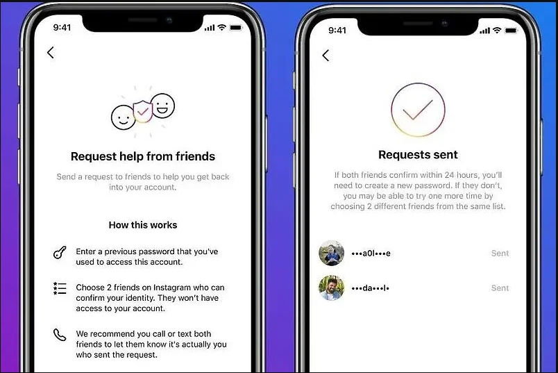 Jedna od metoda koju korisnik može iskoristiti za verifikaciju profila jeste da zatraži od svoji prijatelja da potvrde njegov identitet. Ukoliko je pristup profilu onemogućen, korisnik može uz pomoć svojih prijatelja verifikovati identitet. Instagram je počeo testirati ovu funkciju ranije ove godine, a sada je dostupna svima. Prijatelji korisnika imaju rok od 24 sata da odgovore na njegov zahtev. Ukoliko to učine, Instagram će omogućiti korisniku resetovanje šifre.