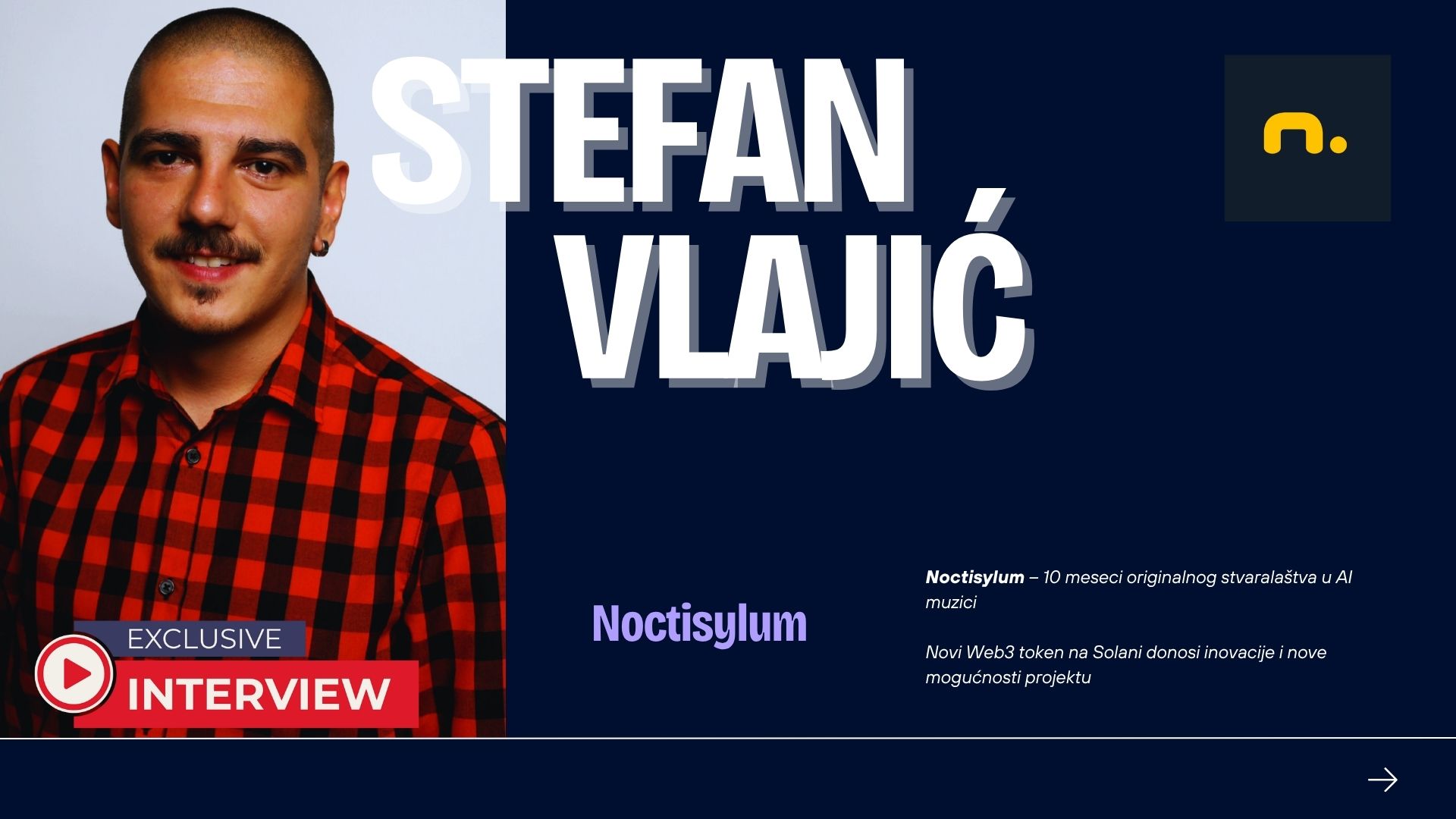 Razgovarali smo sa Stefanom Vlajićem o deset meseci originalnog stvaralaštva, izazovima spajanja kompleksnih tehnologija i umetničke vizije, i kako on vidi potencijal AI muzike da se probije na mainstream radio stanice. Saznajte kako je Noctisylum spojio algoritme, kreativnost i decentralizaciju u jedinstvenu umetničku celinu.