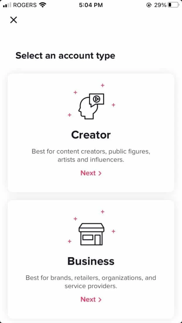 Lako je preći na Business ili Creator TikTok profil. Samo idite na Manage Account i izaberite Switch to Business Account. Izaberite najbolјu kategoriju i spremni ste da kopate u podatke!