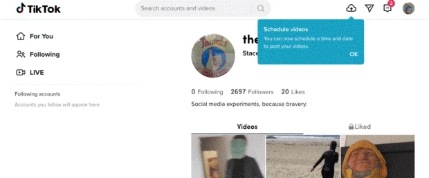 Takođe možete unapred da zakažete TikTok video snimke ako ih otpremate iz browzera – u slučaju da niste na telefonu u trenutku kada su vaši super fanovi.