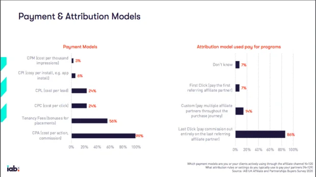 U većini slučajeva, brendovi i trgovci plaćaju provizije od prodaje kada kupac klikne preko pridružene veze. U nekim slučajevima, posebno za stavke sa većim ulaznicama, brendovi mogu da plaćaju potencijalne klijente, instaliranje aplikacije, registracije ili čak klikove. U svakom slučaju, brend plaća samo rezultate koji direktno utiču na tok prodaje.