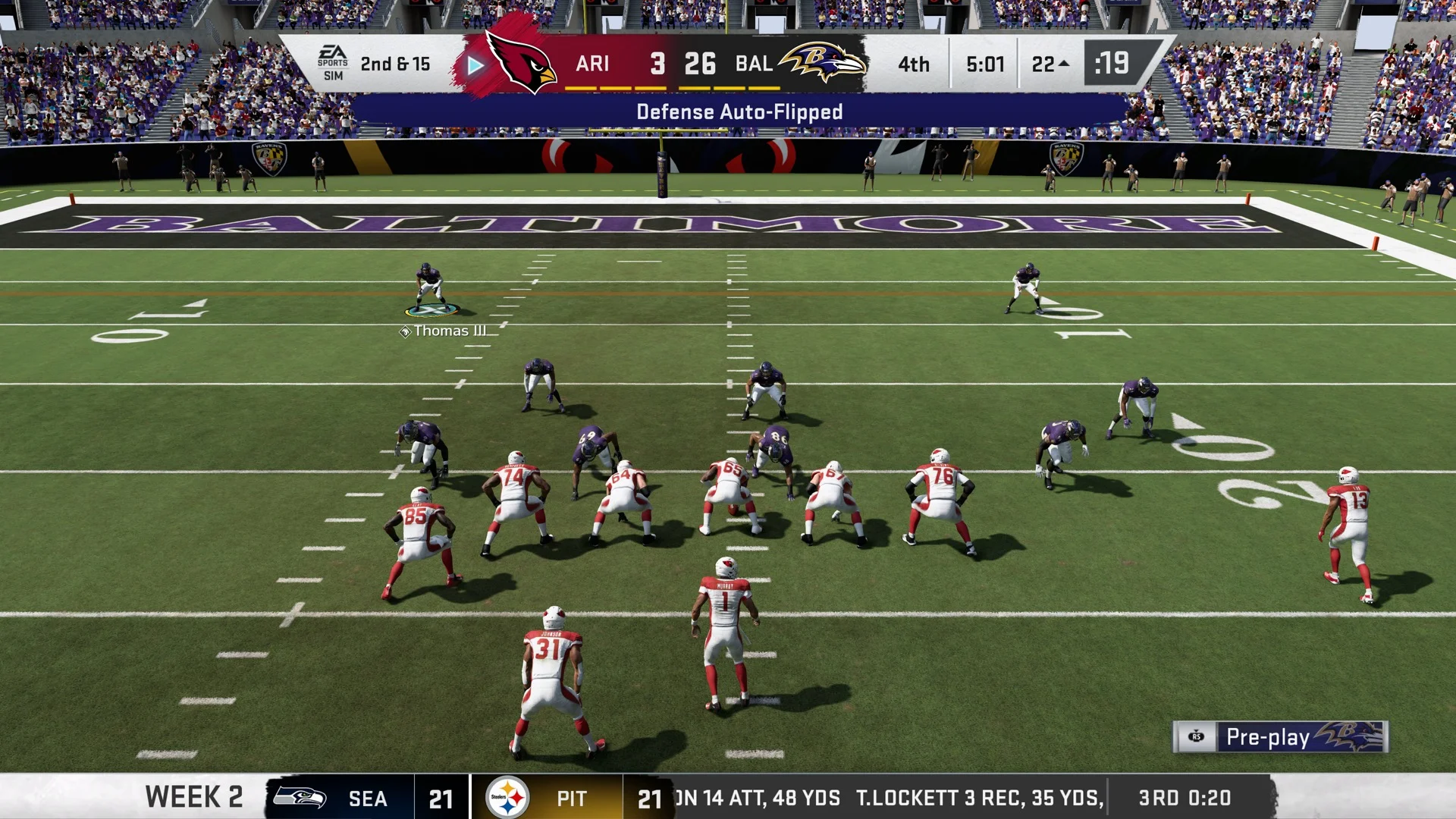 Branioci se i dalјe fokusiraju na vas, tako da još uvek možete da promenite svoj ugao ako pred sobom imate blokatora koji će zadržati tog branioca. Čini se da i lopta ove godine nešto previše naginje. I na kraju, još uvek se čini da unapred utvrđeni AI još uvek postoji u igri. Ako će računar da postigne ili će u osnovi učiniti ono što je potrebno za postizanje određenog cilјa, to će se najverovatnije i desiti. Rekavši sve to, čini se da u drugim oblastima postoje pobolјšanja. Ofanzivna i odbrambena linija, naročito kada se igra D-Line, oseća se mnogo bolјe. Takođe, ako uklizavate ka nogama Quarterback-a, uslediće neobjašnjiv poziv bez obzira na sve. Hvatanje u pokretu pokazuje blјeskove pobolјšanja, ali neke od prelaznih animacija to još uvek zadržavaju.