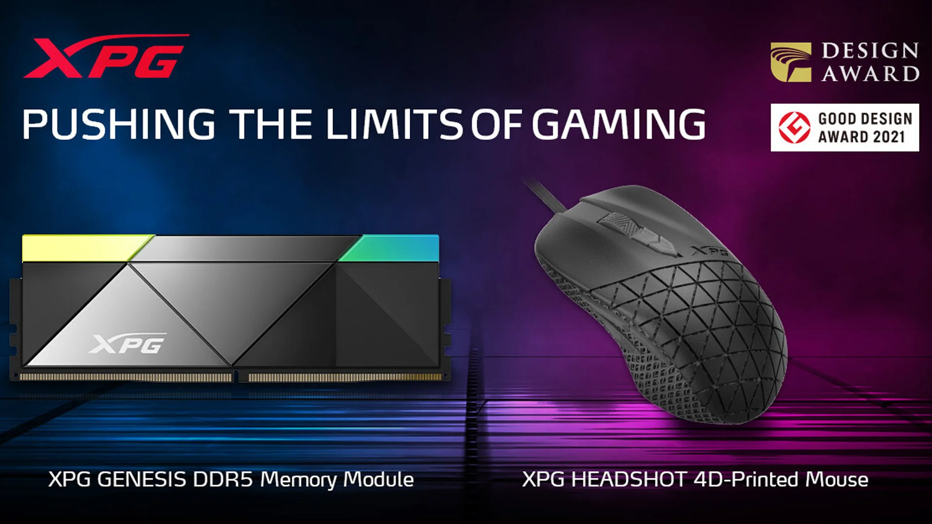 XPG, sistemski provajder komponenti i perifernih uređaja za igrače, profesionalne gejmere i obožavaoce tehnologije koji beleži brz rast objavio je danas da su miš za gejmere XPG HEADSHOT i DDR5 memorijski modul GENESIS DDR5 nagrađeni za dizajnersku izvrsnost nagradama 2021 Good Design Awards.