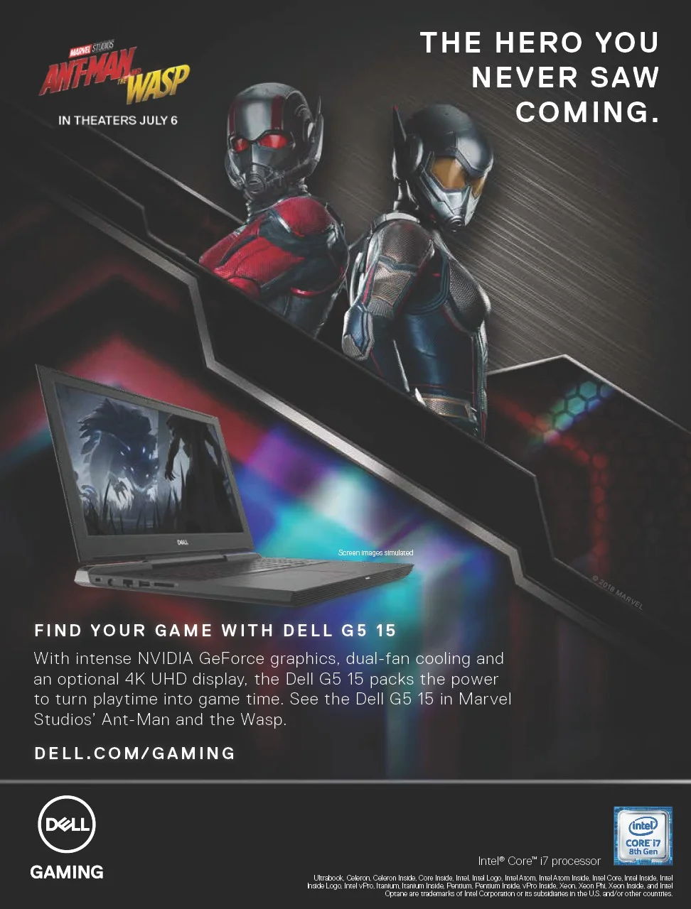Dell je i pokrenuo globalnu reklamnu kampanju povodom filma „Ant-Man and The Wasp“ te će Marvelovi fanovi u reklamnom spotu imati prilike da vide novi Dell G5 laptop, koji hardcore gejmerima pruža još moćniji doživljaj igranja.