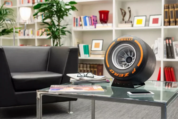Nažalost, zvučnik nije napravljen od gume. Ali, za sada, P Zero Sound je replika (koja dolazi u devet boja) manjih guma F1 timova koja koriste za njihov aerodinamični test aerotunela.