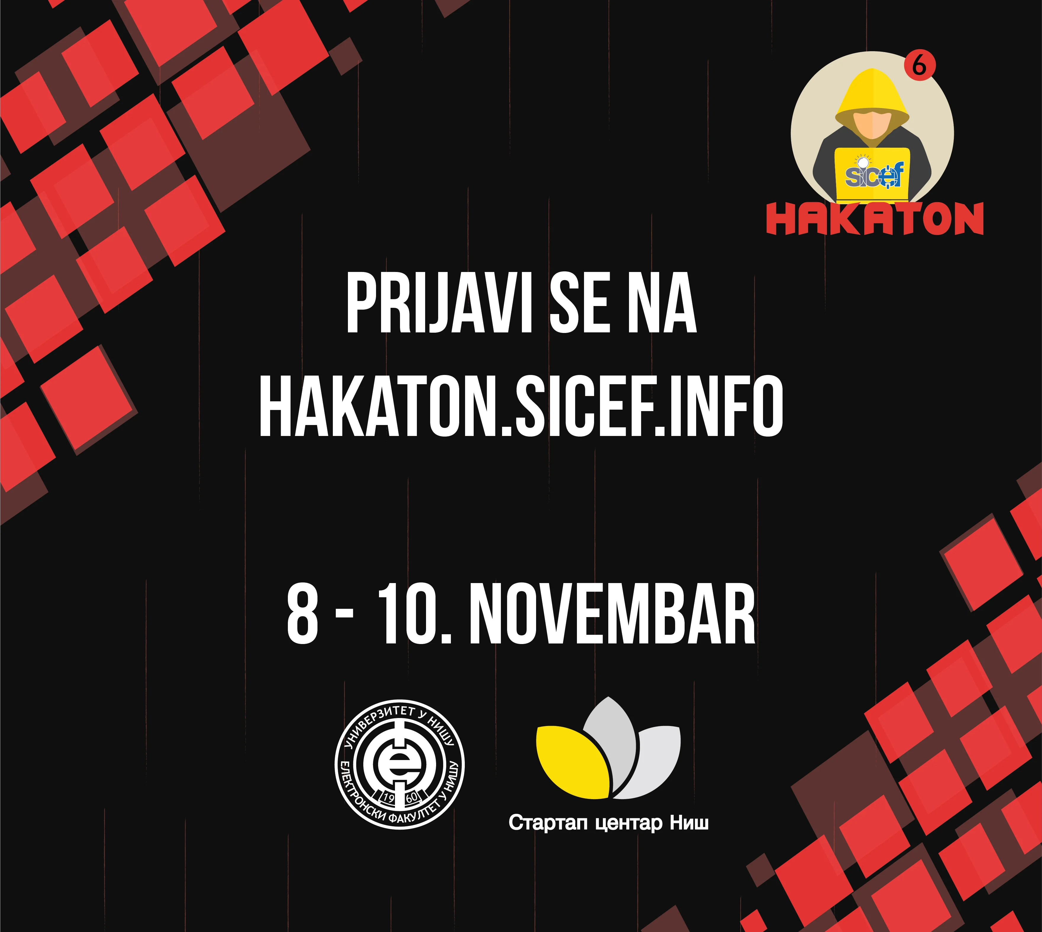 Glavni organizator Hakatona – SICEF (Studentski Inovacioni centar Elektronskog fakulteta u Nišu) je organizacija koja je formirana da bi doprinela studiranju i usavršavanju studenata tehničkih fakulteta i popularizovala struku inženjera. Sa istim ciljem pozivamo sve zainteresovane takmičare da se prijave do 1. novembra i steknu nova prijateljstva, znanja i iskustva!