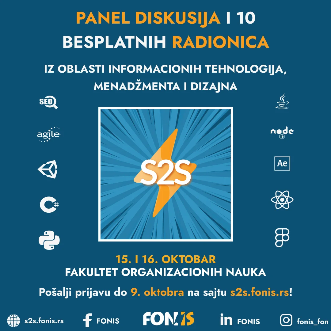 Prijave za učešće na projektu su otvorene do 9. oktobra na sajtu s2s.fonis.rs gde možete naći više informacija o projektu. Takođe, obaveštenja o projektu možete ispratiti i na našem Instagram profilu @fonis_fon.