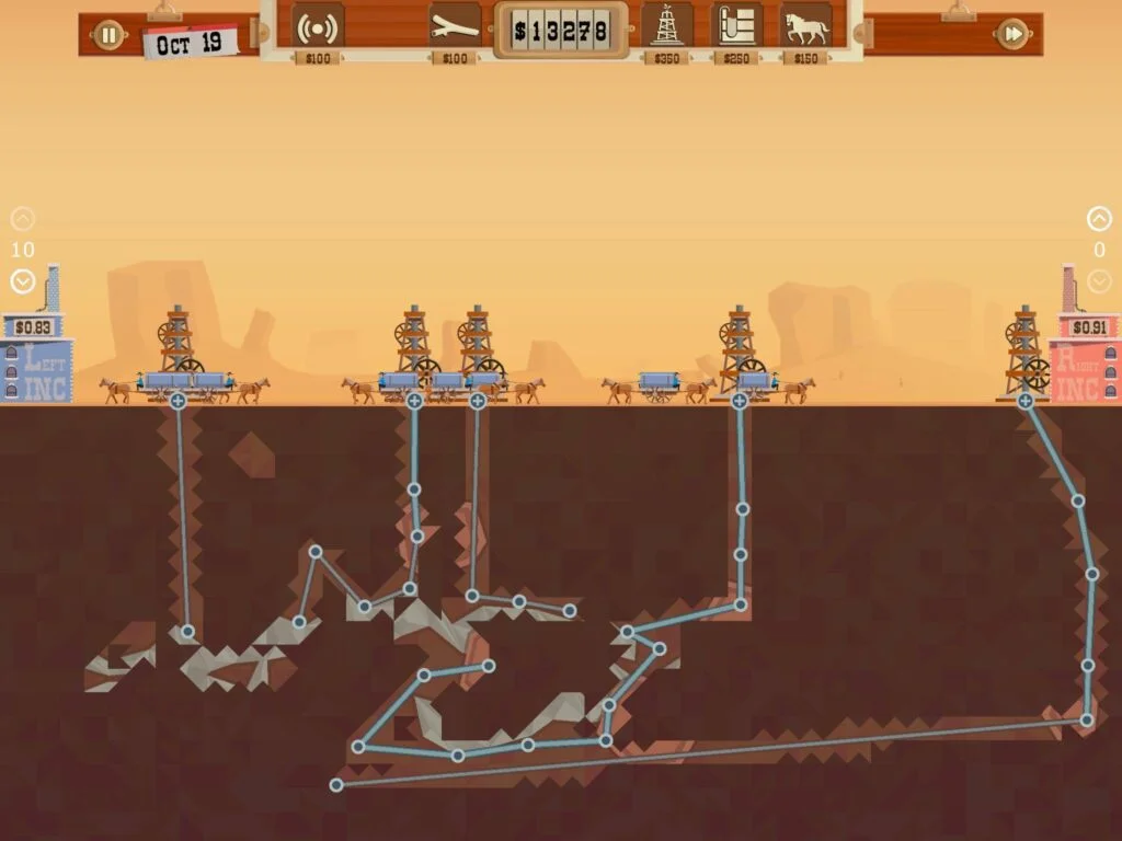 Procesi bušenja su ograničeni vremenom pre nego što se treba vratiti u grad i prijaviti zaradu. Dok vreme ističe, ploče koje pokrivaju zemlju otpadaju, pokazujući žarišta ulja koja su promašena. Postoji neka čudna zabava u tome kada vidite da je cev koju ste postavili bila nekoliko metara udaljena od ogromnog žarišta. Igra nije samo fokusirana na zarađivanje što više para. Imate protivnike sa kojima se nadmećete za titulu najboljeg barona. Oni su veoma dobri, računajući na to koliko će vam trebati da dostignete njihov nivo. Taj nivo se dostiže tako što koristite strateške nadogradnje, i mita koja postepeno postaju dostupna u početnim rundama igre.