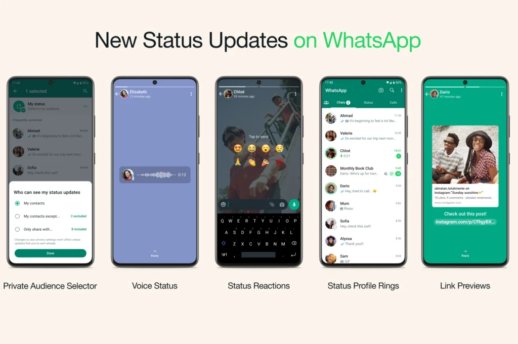 Status Profile Rings „stavlja prsten“ oko fotografije profila nakon objavljivanja novog statusa, a vidljiv je na listi chatova, listi članova grupa i u informacijama o kontaktu. Konačno, omogućen je i preview linka kada se postavi u status, tako da će kontaktima biti jasnije o čemu je reč pre nego se odluče da kliknu.