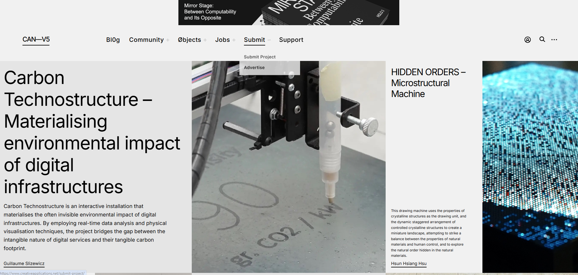 - Istraživati inovativne projekte – CAN predstavlja projekte koji spajaju umetnost i tehnologiju, uključujući interaktivne instalacije, generativnu umetnost, virtuelnu stvarnost i softverske alate za kreativce.