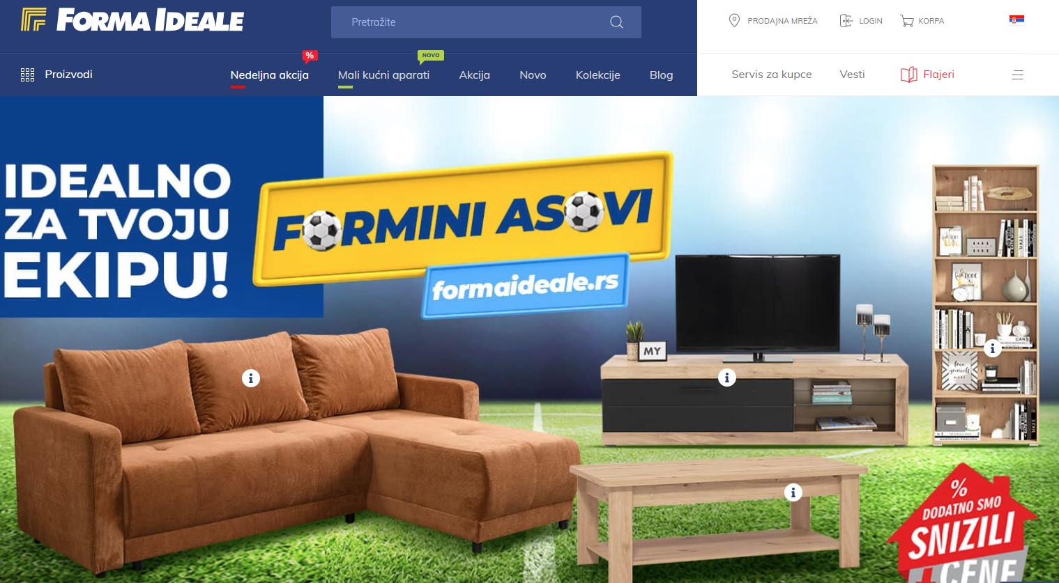 Forma Ideale je vodeća kompanija u Srbiji za prodaju nameštaja, nudeći širok asortiman visokokvalitetnih proizvoda za opremanje doma. Na sajtu Forma Ideale možete pronaći sve što vam je potrebno za udoban i moderan dom – od dnevnih i spavaćih soba, preko kuhinja i trpezarija, do kancelarijskog nameštaja i dekoracije.