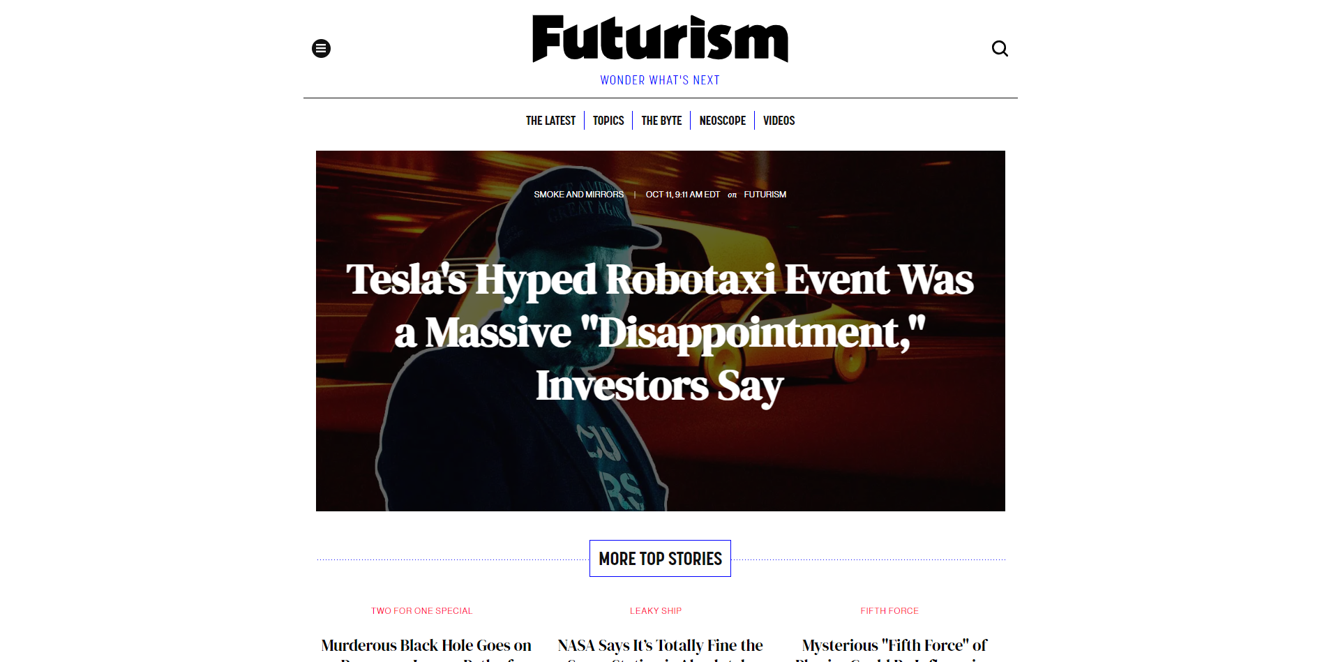 Futurism je online platforma posvećena izveštavanju o naučnim, tehnološkim i inovativnim dostignućima koja oblikuju budućnost. Sa fokusom na teme kao što su svemirska istraživanja, veštačka inteligencija, biotehnologija i klimatske promene, Futurism pruža čitaocima uvid u najnovije trendove i istraživanja koja mogu značajno uticati na svet u kojem živimo.