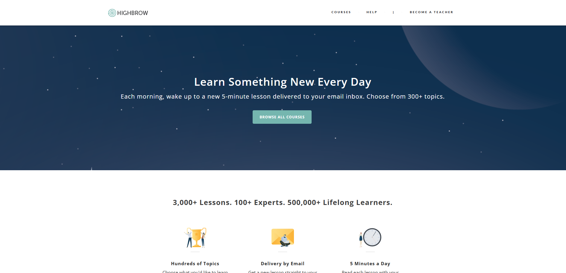 GoHighbrow je edukativna platforma koja korisnicima pruža pristup svakodnevnim, kratkim kursevima putem e-pošte. Cilj sajta je da omogući učenje kroz lako probavljive lekcije koje se mogu uklopiti u svakodnevne obaveze, pružajući zanimljive i korisne informacije u formatima koji traju samo pet minuta dnevno. GoHighbrow je posebno koristan za ljude koji žele da prošire svoje znanje bez previše vremena uloženog u formalno obrazovanje.