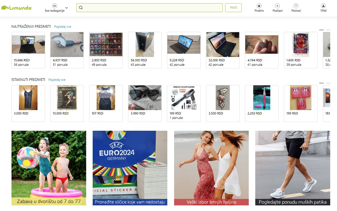 Limundo.com je idealno mesto za sve koji žele da iskoriste prednosti online aukcija, bilo da kupuju retke predmete ili prodaju proizvode koje više ne koriste. Sa svojom posvećenošću korisnicima i stalnim inovacijama, Limundo.com nastavlja da bude lider u svetu online trgovine u Srbiji.