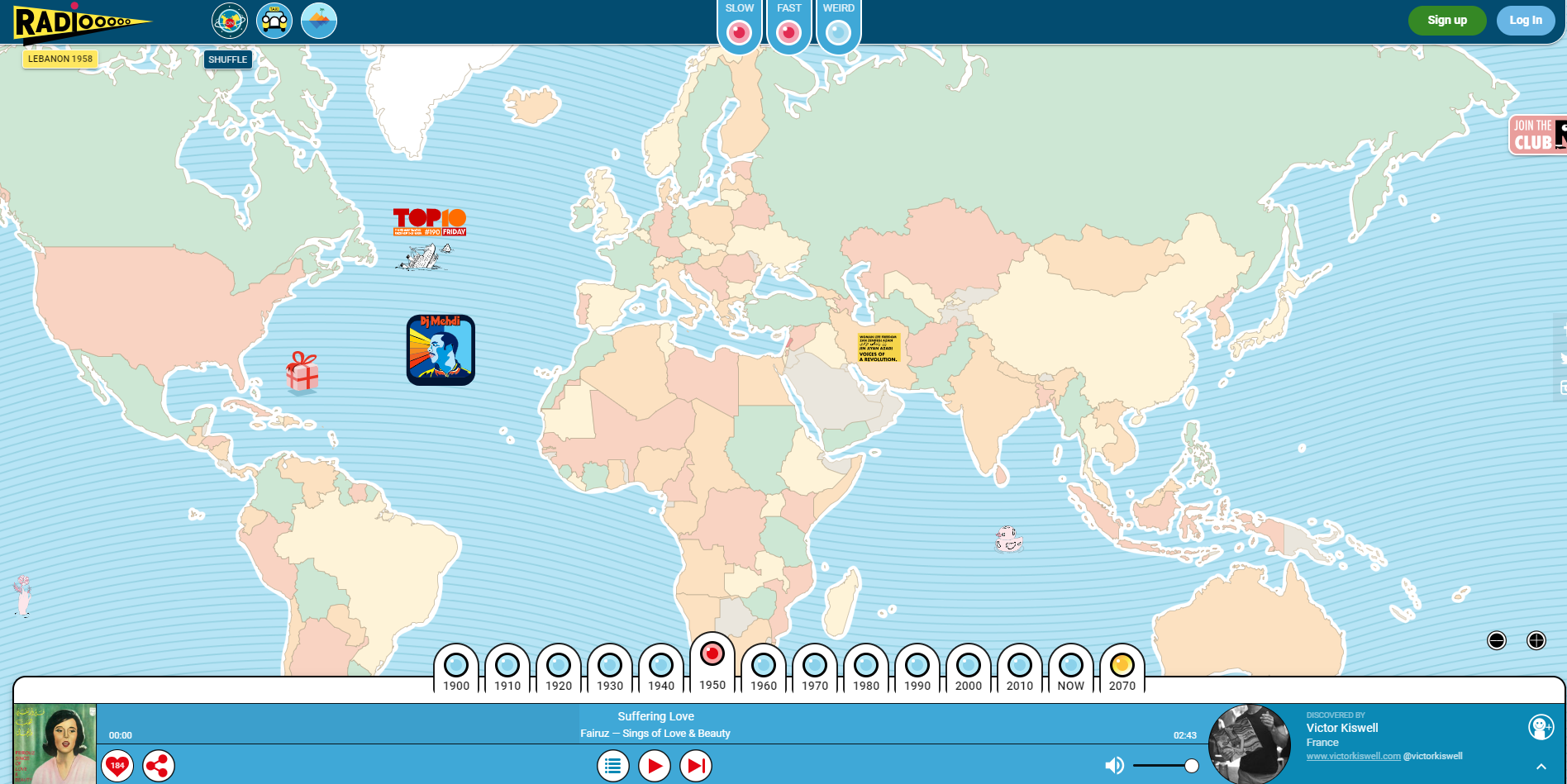 - Istražujte muziku iz raznih zemalja i decenija na svetskoj mapi.