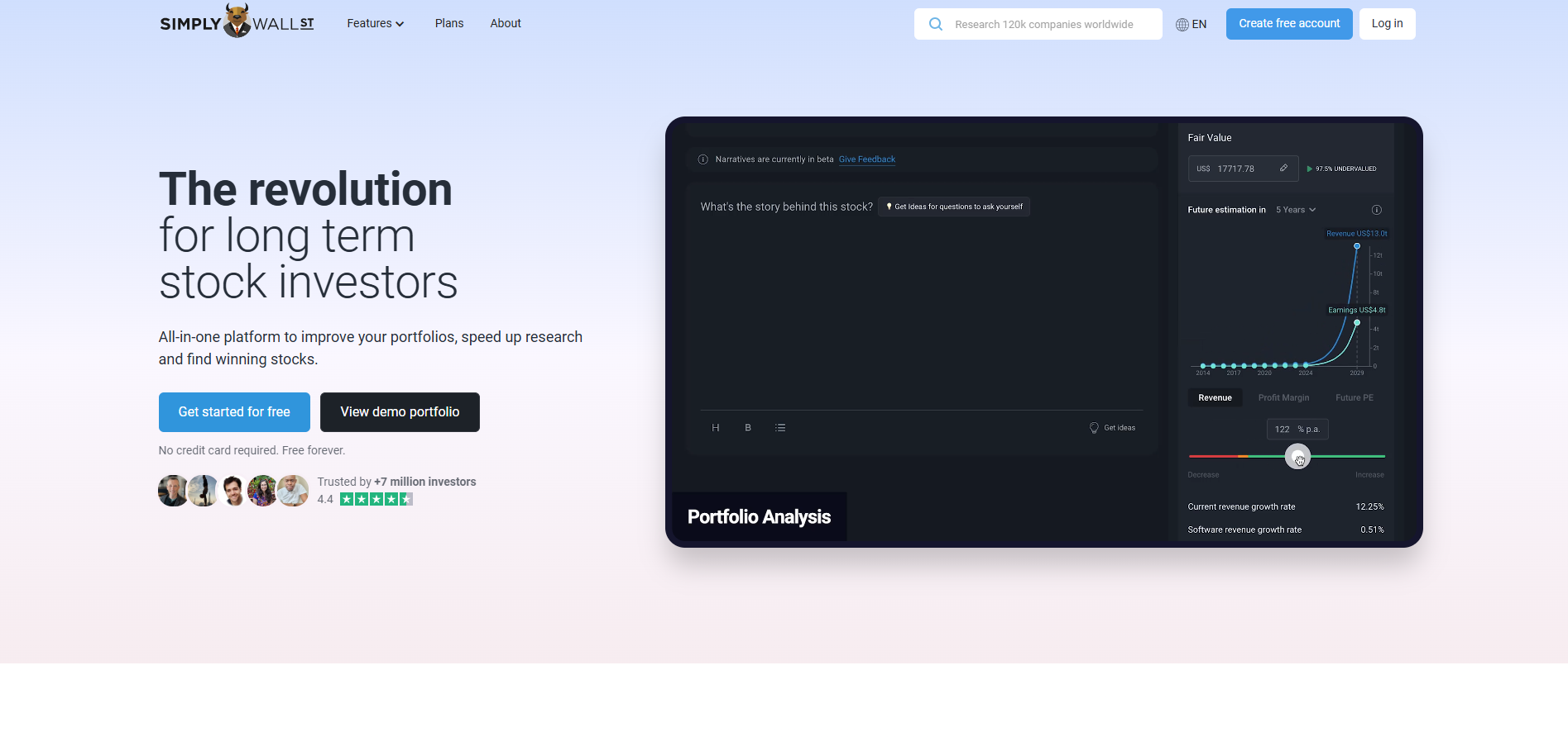 - Istraživati analize akcija – Simply Wall St nudi detaljne analize akcija, predstavljene kroz vizuelne infografike koje olakšavaju razumevanje osnovnih podataka o kompanijama, uključujući finansijske metrike, procenu vrednosti i potencijal rasta. Korisnici mogu lako identifikovati investicione prilike na osnovu kvantitativnih podataka.