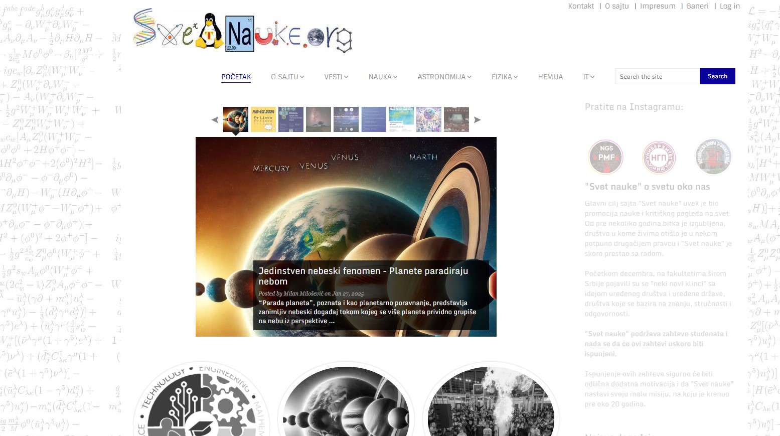 Sajt nudi članke u različitim kategorijama, kao što su vesti, nauka, astronomija, fizika, hemija i IT. Ovaj sajt se nama čini kao pouzdan izvor informacija o naučnim temama, tehnologiji i istraživanjima, pružajući znanje široj publici.
